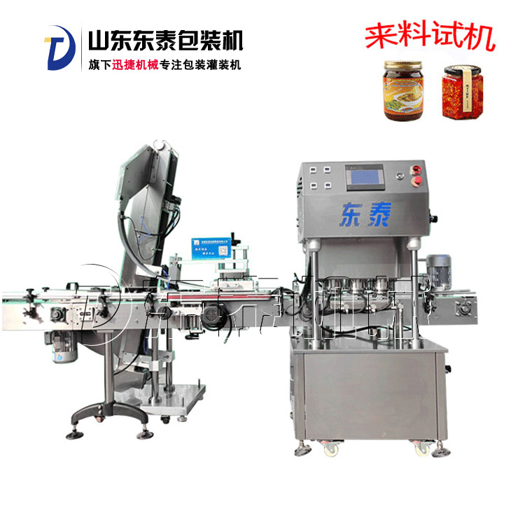 該直線式真空旋蓋機(jī)是東泰機(jī)械結(jié)合用戶使用情況,摒棄了傳統(tǒng)轉(zhuǎn)盤式真空旋蓋機(jī)的弊端,研制開發(fā)的新型高效設(shè)備,設(shè)備自動(dòng)檢測(cè)到兩個(gè)瓶子蓋子進(jìn)入到雙頭真空旋蓋機(jī)內(nèi),旋蓋機(jī)彩色顯示屏?xí)?shí)時(shí)顯示旋蓋狀況,整機(jī)多點(diǎn)檢測(cè),當(dāng)進(jìn)口無瓶無蓋、出口堵塞、定位不準(zhǔn)、瓶身傾倒均自動(dòng)停機(jī)。單個(gè)旋蓋頭達(dá)到的真空度都可以單獨(dú)顯示,單獨(dú)調(diào)整。合格