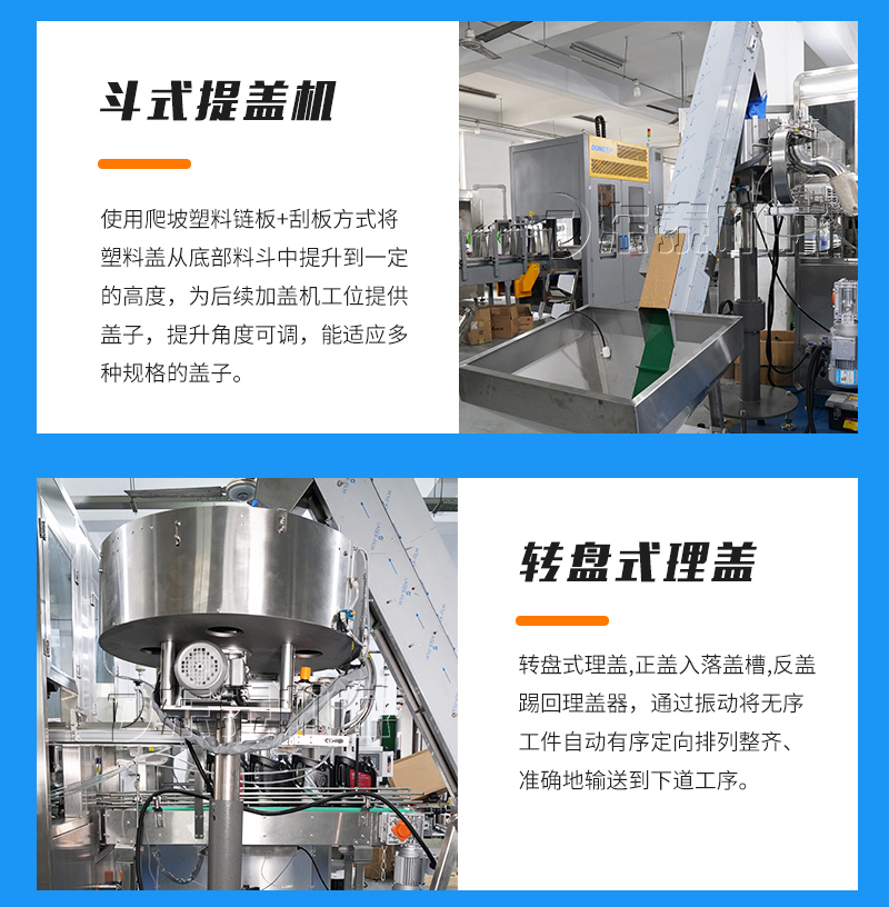 1、通用性強(qiáng):適用于50-1000ml各類圓瓶、方瓶和扁壺的自動理蓋,旋蓋;