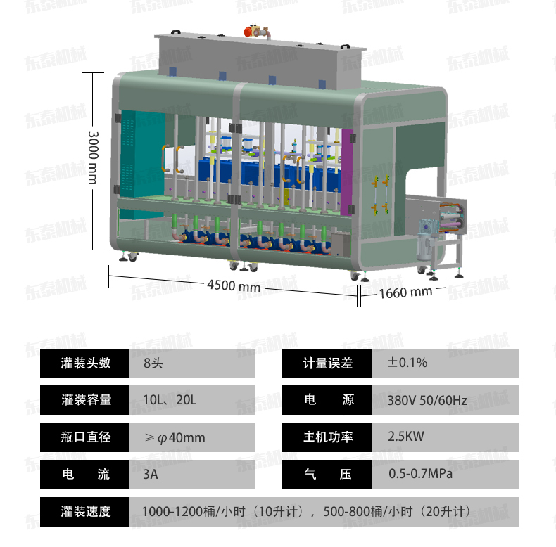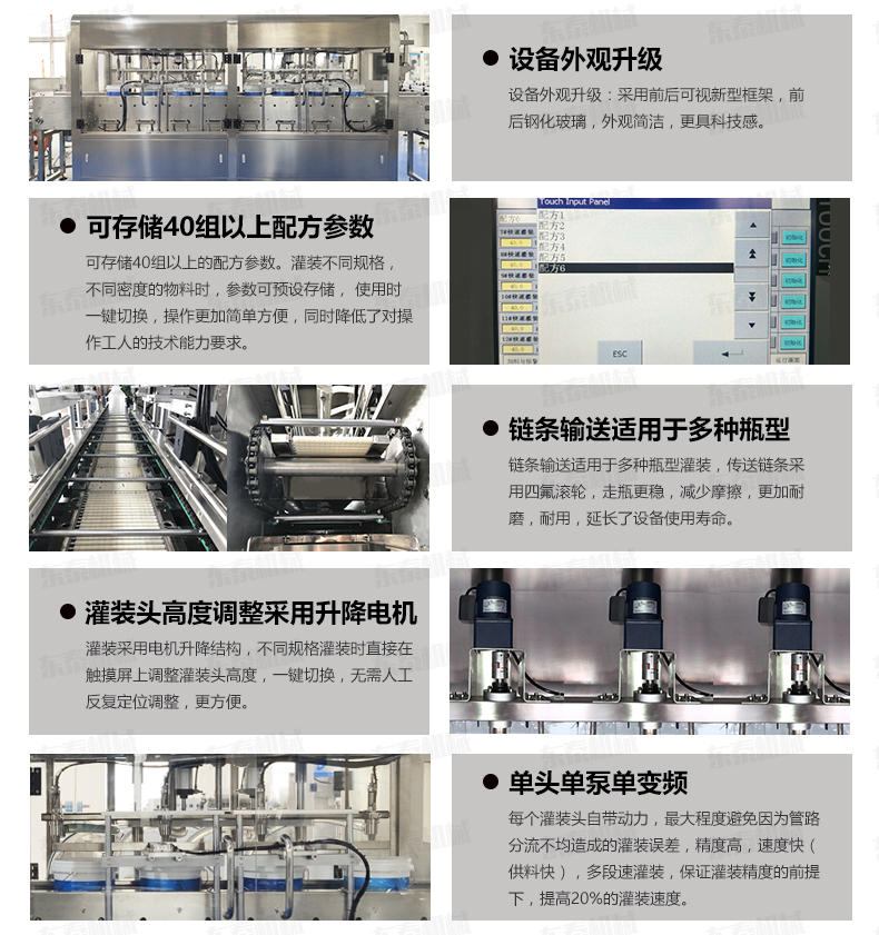 • 該系列灌裝機采用容積式計量灌裝原理,多項專利認證,適用于各種規(guī)格(1-5L)的液體肥等液體灌裝。設(shè)備采用伺服驅(qū)動活塞計量,保證了 1‰的灌裝精度,在保證灌裝精度的同時,提高了 2...